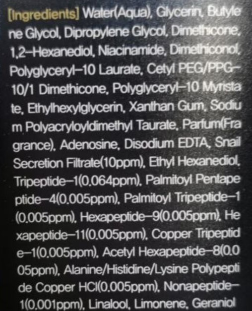 Ампула за лице със секреция от охлюв и пептиди. Секрецията от охлюв е съставка, която стимулира естественото производство на колаген, което води до забавяне на процесите на стареене. Секретът съдържа полезни микроелементи, които предоставят и поддържат естествената регенерация на клетките. Поддържа естествената регенерация на клетките, хидратира и се бори с несъвършенствата по кожата, за да подобри еластичността на кожата, сухата и застаряваща кожа.