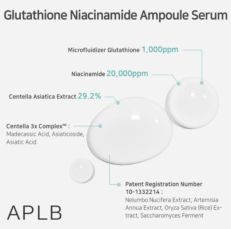 Серум за лице с ниацинамид, глутатион, сквалан, пантенол за изсветляване, успокояване и подсилване на кожната бариера. Богат на азиатска центела и нейните активни компоненти (Asiaticoside, Madecassic Acid, Asiatic Acid), които възстановяват и успокояват чувствителната кожа. Формулата е обогатена със сквалан и бета-глюкан за дълбока хидратация и еластичност, както и с колаген за по-стегната кожа. Резултатът е по-сияйна хидратирана кожа с подобрена еластичност и равномерен тен.
