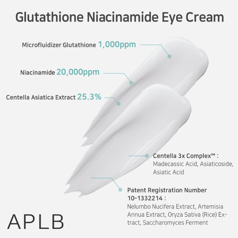 Околоочен крем с ниацинамид, глутатион, сквалан, бета-глюкан за изсветляване, успокояване и подсилване на кожната бариера. Богат на азиатска центела и нейните активни компоненти (Asiaticoside, Madecassic Acid, Asiatic Acid), които възстановяват и успокояват чувствителната кожа. Формулата е обогатена със сквалан и бета-глюкан за дълбока хидратация и еластичност, както и с колаген за по-стегната кожа. Резултатът е по-сияйна хидратирана кожа с подобрена еластичност и равномерен тен.