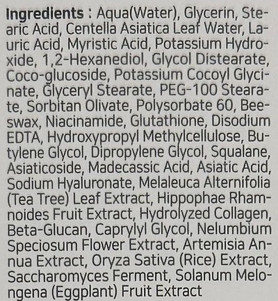 Екстрактът от Centella Asiatica интензивно регенерира, успокоява и укрепва бариерата на кожата, както и възстановява нивото на хидратация на кожата. Растение за заздравяване на рани с противовъзпалителни качества. Намалява умората, хиперпиментацията, дразненето и зачервяванията и повишава нивата на антиоксиданти в кожата.