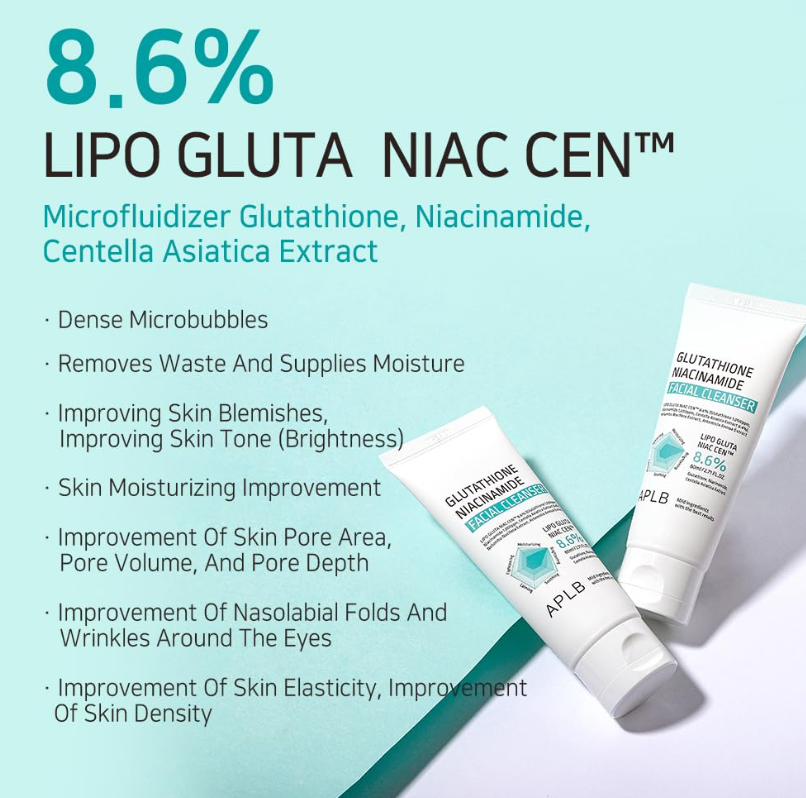 Глутатионът има антиоксидантни свойства, предпазва кожата от оксидативен стрес и свободни радикали, изсветлява кожата, помага за изравняване на тена на кожата и намалява хиперпигментацията. Освен това, противовъзпалителните ефекти на глутатиона успокояват кожни заболявания като акне и розацея, като същевременно насърчават производството на колаген и еластин за подобрена еластичност на кожата.