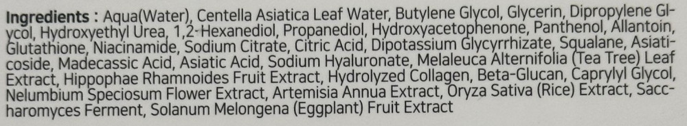 Екстрактът от Centella Asiatica интензивно регенерира, успокоява и укрепва бариерата на кожата, както и възстановява нивото на хидратация на кожата. Растение за заздравяване на рани с противовъзпалителни качества. Намалява умората, хиперпиментацията, дразненето и зачервяванията и повишава нивата на антиоксиданти в кожата.