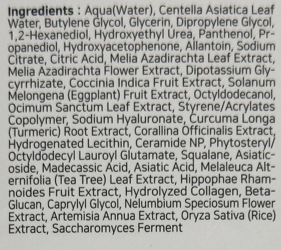 Екстрактът от Centella Asiatica интензивно регенерира, успокоява и укрепва бариерата на кожата, както и възстановява нивото на хидратация на кожата. Растение за заздравяване на рани с противовъзпалителни качества. Намалява умората, хиперпиментацията, дразненето и зачервяванията и повишава нивата на антиоксиданти в кожата.
