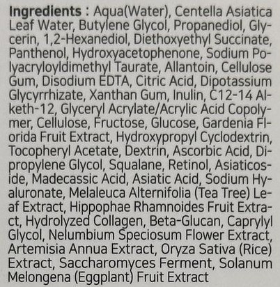 Екстрактът от Centella Asiatica интензивно регенерира, успокоява и укрепва бариерата на кожата, както и възстановява нивото на хидратация на кожата. Растение за заздравяване на рани с противовъзпалителни качества. Намалява умората, хиперпиментацията, дразненето и зачервяванията и повишава нивата на антиоксиданти в кожата.