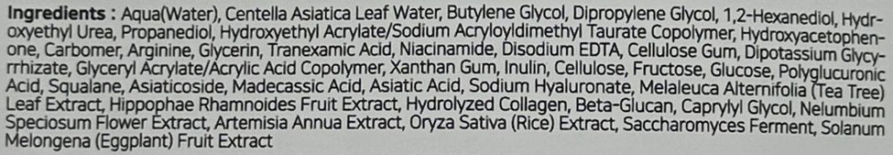 Екстрактът от Centella Asiatica интензивно регенерира, успокоява и укрепва бариерата на кожата, както и възстановява нивото на хидратация на кожата. Растение за заздравяване на рани с противовъзпалителни качества. Намалява умората, хиперпиментацията, дразненето и зачервяванията и повишава нивата на антиоксиданти в кожата.