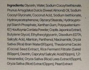 Почистваща пяна за лице със салицилова киселина, ориз, пантенол и ниацинамид е иновативен многофункционален почистващ продукт с уникална текстура, вдъхновена от традиционните корейски оризови кексчета, която при контакт с вода се превръща в мека и пухкава пяна. Формулата комбинира оризов екстракт и оризови ферментирали компоненти, които подпомагат изсветляването на тена, омекотяват кожата и поддържат здравата ѝ бариерна функция. Почистващият продукт съдържа LHA (capryloyl salicylic acid) и салицилова киселина, които осигуряват нежно, но ефективно ексфолиране, подпомагат отпушването на порите и контролират излишния себум, без да причиняват изсушаване. Ниацинамид в състава допринася за подобряване на текстурата, балансиране на кожата и намаляване на видимостта на порите. Формулата е обогатена с успокояващи съставки като пантенол и алантоин, които хидратират кожата и намаляват риска от раздразнение по време на почистване. Продуктът почиства ефективно замърсяванията, излишния себум и остатъците от грим, като същевременно запазва комфорта на кожата и предотвратява усещането за опъване. Тази пяна може да се използва както като ежедневен почистващ продукт, така и като кратка почистваща маска, нанесена върху суха кожа преди изплакване за по-интензивно почистване и ексфолиране. При редовна употреба кожата изглежда по-гладка, по-чиста и по-равномерна, с видимо подобрена текстура и свежест.