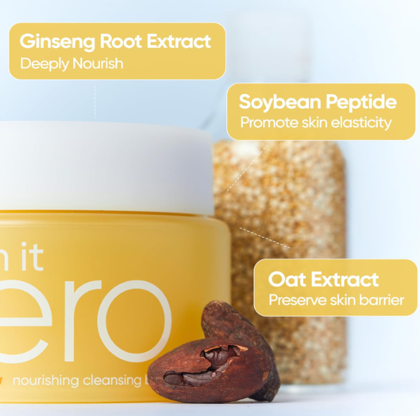 Banila Co Clean It Zero Cleansing Balm Nourishing перфектно абсорбира и премахва дори най-упорития грим, лесно премахва всяка основа, разтваря маслените тапи и старателно почиства, прониквайки дълбоко в порите и ги стяга. Активно подхранва кожата, справя се със сухота и лющене. Балсамът е лесен за използване, чудесен за суха кожа, не предизвиква усещане за опъване след измиване и поддържа необходимото ниво на влага в епидермиса. Първоначално балсамът наподобява шербет, който лесно се изважда от буркана и се разнася по повърхността на кожата; под въздействието на топлина балсамът се разтапя върху кожата и се превръща в масло и разтваря всички замърсявания. Когато се смеси с вода, маслото преминава в млечна фаза и лесно се отмива от кожата, без да оставя мазен филм и лепкавост. Балсамът има лек медено-цветен аромат, при производството му не се използват изкуствени оцветители или алергенни аромати. Продуктът е преминал редица проучвания и дерматологични тестове, за да потвърди неговата безопасност и годност за употреба върху чувствителна кожа.