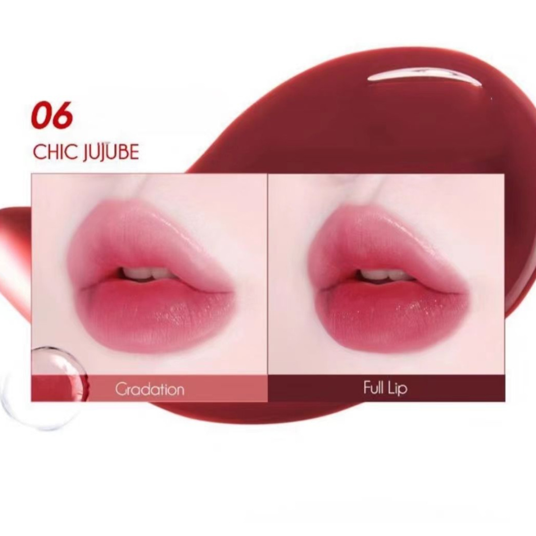 Този сияен тинт за устни придава свеж, плодов цвят и естествен блясък, който подчертава устните без да ги утежнява. Леката водна текстура се нанася изключително гладко, попива бързо и оставя комфортно усещане, без лепкавост. Оцветява устните нежно и равномерно, като създава ефект на „устни, целунати от плодов сок“.