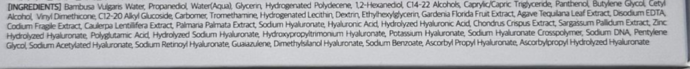 Хиалуроновата киселина прониква в кожата и изпълва клетките с необходимата влага. Укрепва и подобрява еластичността на кожата, предотвратявайки ранната поява на бръчки. Попълва липсата на влага и се бори с дехидратацията на кожата. Осигурява на кожата мекота, незабавно хидратира и успокоява сухата и изморена кожа.