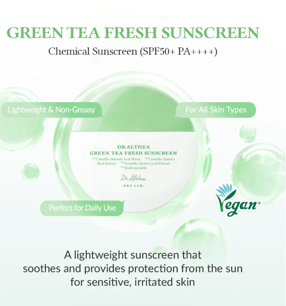 Слунцезащитен крем за лице със зелен чай, комбуча и азиатска центела, създаден с внимателно подбрани съставки за успокояване и защита на чувствителна и раздразнена кожа. Леката водниста текстура се нанася лесно, абсорбира се бързо и не оставя мазен филм, което го прави подходящ за кожа, склонна към зачервяване. Комбинацията от зелен чай и комбуча успокоява кожата и осигурява надеждна UV защита, като същевременно поддържа усещане за комфорт през целия ден. Идеален избор за чувствителна или акнеична кожа, която се нуждае от ежедневно слънцезащитно покритие без тежест. Химични филтри с UVA + UVB защита