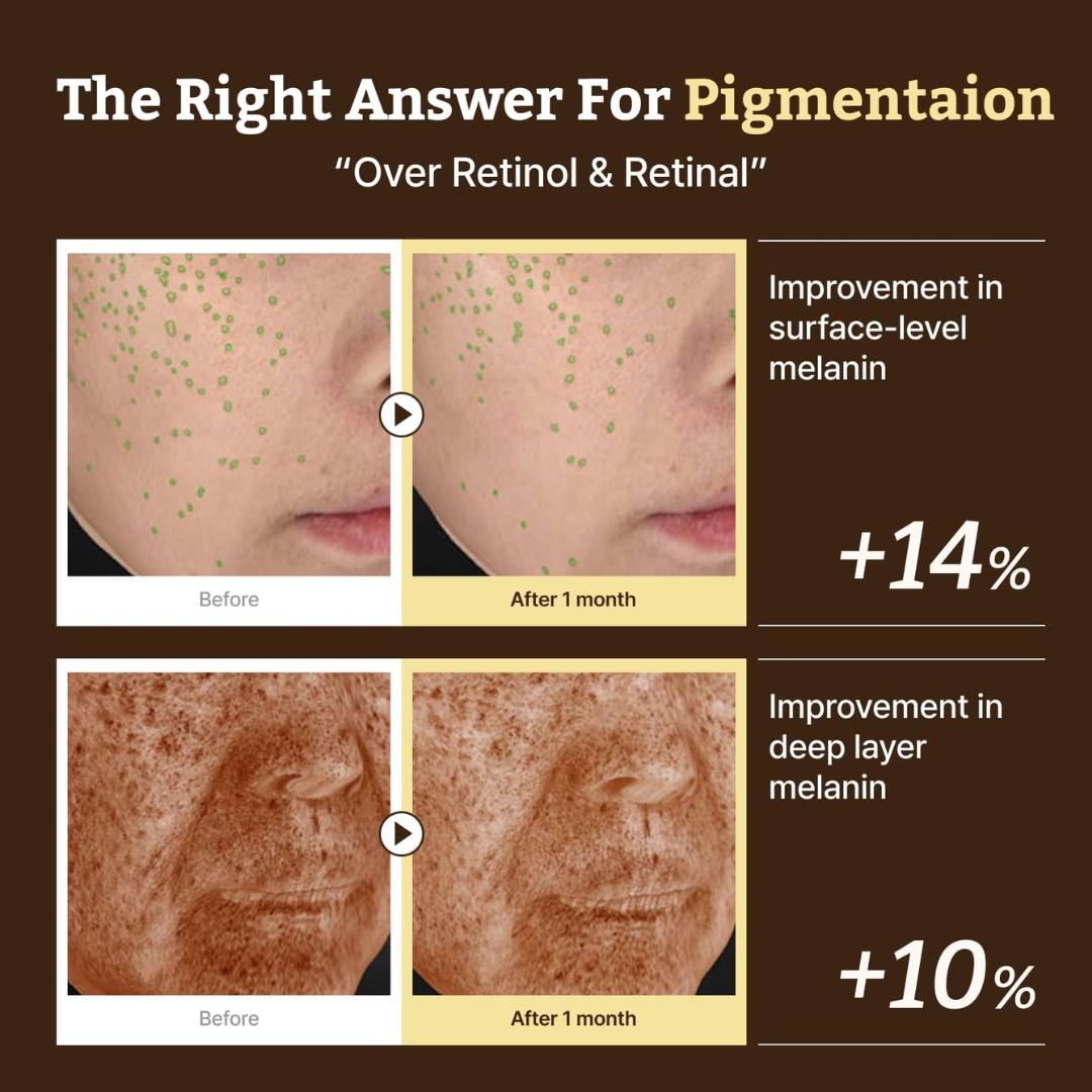 Накратко:Серум за лице с ретиноид, токоферол, сквалан и транексамова киселина е високоефективен серум с усъвършенствана ретиноидна формула, разработена да подобри текстурата, тона и здравината на кожата без агресивно раздразнение. На ключова позиция в състава стои Hydroxypinacolone Retinoate (HPR) – стабилен и нежен ретиноид, който стимулира обновяването на кожните клетки и подпомага видимото изглаждане на фините линии и бръчки. Серумът съдържа 10 % ниацинамид (витамин B3), който работи за изравняване на тена, укрепване на кожната бариера и намаляване на пигментацията, придавайки на кожата по-сияен и равномерен вид. Активният 4 % транексамова киселина допълнително подкрепя намаляването на тъмните петна, като блокира както производството, така и трансфера на меланин към повърхността на кожата. Формулата включва и α-bisabolol, който има успокояващи и защитни свойства, намалявайки потенциалното раздразнение и подпомагайки комфорта по време на употреба. Леката, бързо абсорбираща се текстура прониква ефективно, без да оставя тежък или лепкав остатък, което прави серума подходящ както за вечерна грижа, така и за рутина, комбинирана със слънцезащита. Този серум съчетава анти-ейджинг и brightening действие, като подпомага намаляването на фини линии, изглажда повърхността на кожата и спомага за постигане на по-младежки и свеж тен. Подходящ е за широк спектър от типове кожа, включително чувствителни, благодарение на балансирания си профил, който предлага мощни резултати с минимално раздразнение. Редовната употреба на Advanced Retino-Mela Serum подпомага по-стегнат, по-сияен и по-равномерен тен, което го прави отличен избор за тези, които търсят комплексно решение срещу стареене, пигментация и неравна текстура. Кремообразната, но лека текстура го прави лесен за интегриране във всяка ежедневна рутина за грижа за кожата.