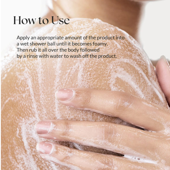 Нанесете умерено количество върху тялото си. Нежно масажирайте, след което отмийте с топла вода.