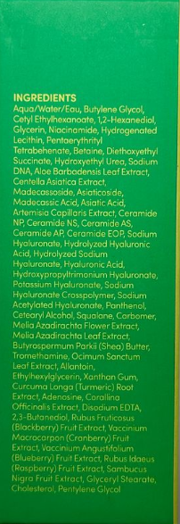 Екстрактът от Centella Asiatica интензивно регенерира, успокоява и укрепва бариерата на кожата, както и възстановява нивото на хидратация на кожата. Растение за заздравяване на рани с противовъзпалителни качества. Намалява умората, хиперпиментацията, дразненето и зачервяванията и повишава нивата на антиоксиданти в кожата.