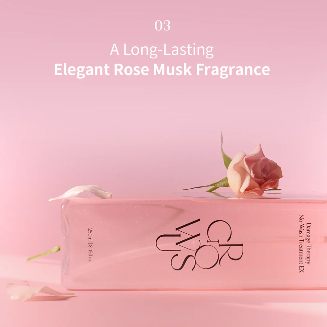 Терапия за коса без измиване с морски колаген, 6 вида водорасли,пептди и биотин е формулиран, за да възстанови сериозно увредената коса, като комбинира съставки богати на витамини и минерали — за дълбока хидратация и подхранване. GROWUS Damage Therapy No-Wash Treatment EX се пръска равномерно по влажна, подсушена коса от корена до върха, след което следва разресване и стилизиране — без изплакване. Перленият екстракт придава огледален блясък и възвръща жизнеността, като изглажда кутикулата и усилва еластичността на косъма. Комплексът от шест вида морски водорасли доставя концентрирани витамини и минерали, които дълбоко хидратират, подхранват и укрепват косата от корена до върха. Колагенът с LPB & PPT комплекс интензивно възстановява увредените участъци, възвръща мекотата и възстановява влагозадържащия баланс. Формулата е предназначена за всички типове коса, включително химически третирани—благодарение на своите възстановяващи и защитни свойства. Резултатът е гладка, подхранена и видимо по-здрава коса, готова за стилизиране без допълнителна тежест.