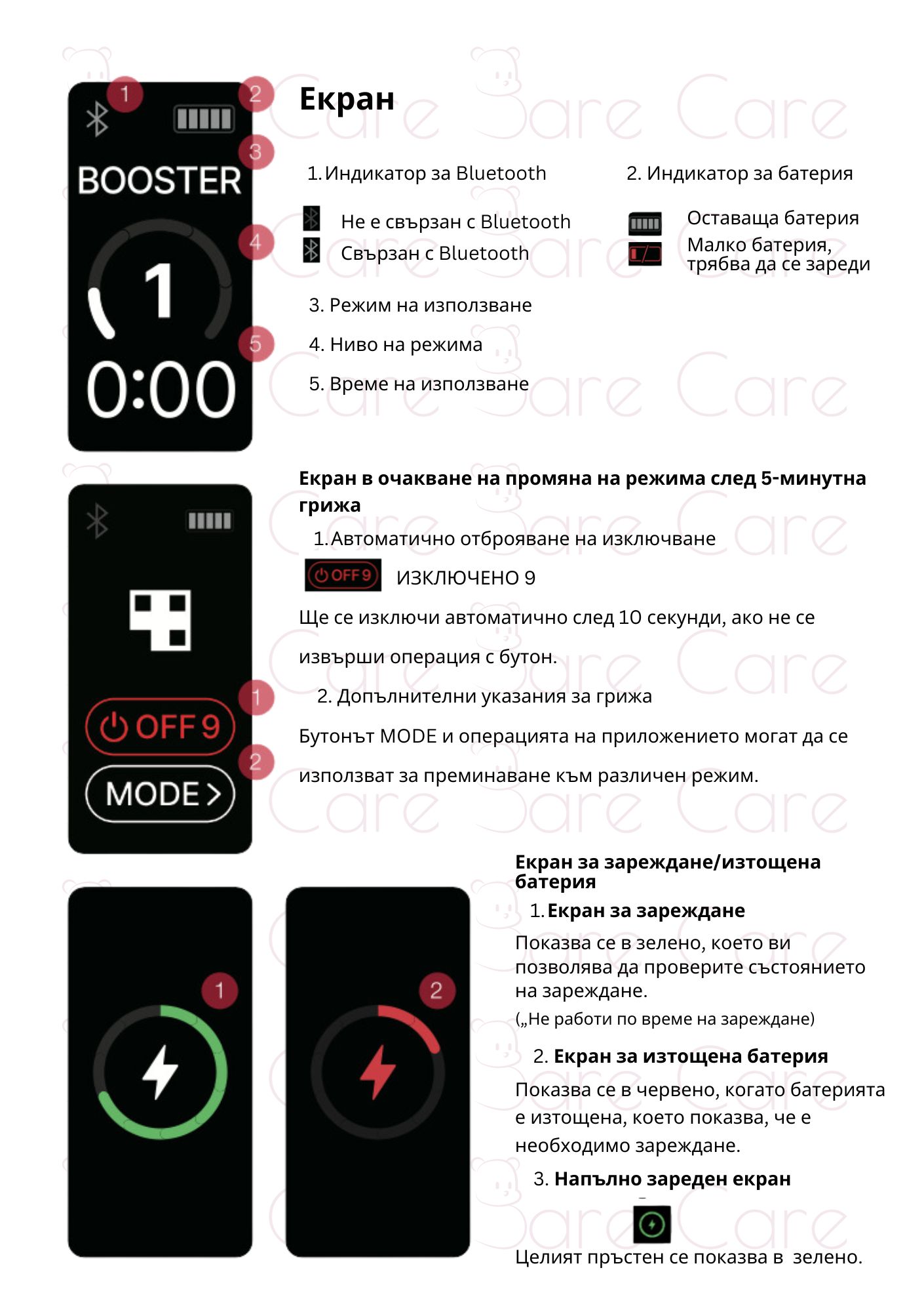Режимът Booster помага за усвояването на активните съставки и по-дълбокото им проникване в различните слоеве на кожата, като същевременно повишава блясъка. Използва електропорация, наричана още безиглена мезотерапия , която създава временни фини отвори за максимално усвояване на активните съставки.