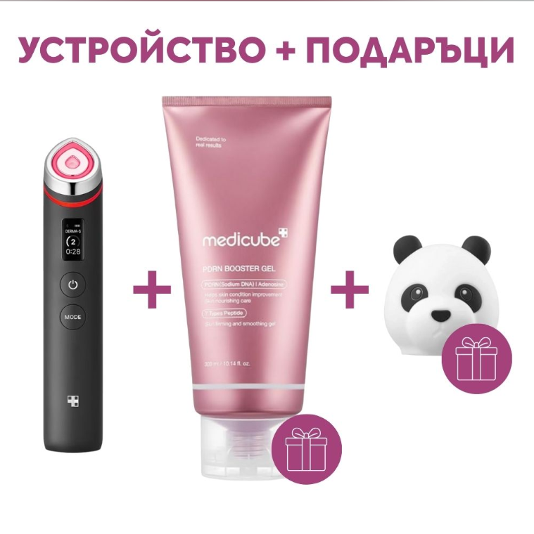 Накратко:Комплект за лице, състоящ се от устройство за кожата, предпазен кейс и бустер гел с PDRN от сьомга, 7 вида пептиди и сътавки, които хидратират, подхранват и стягат кожата. и Хидратиращият гел се грижи за кожата и придава блясък на на кожата.