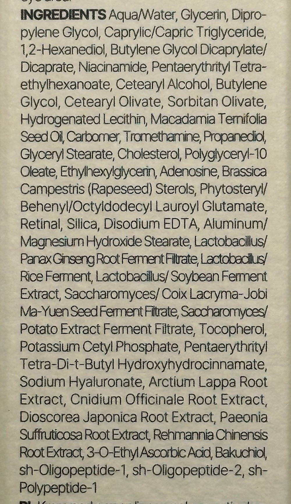 Аденозинът може да повиши производството на колаген и еластин, което помага за намаляване на фините линии и бръчки. Освен това, аденозинът има противовъзпалителни свойства, което го прави ефективен за успокояване на раздразнена кожа и подобряване на кожната бариера.
