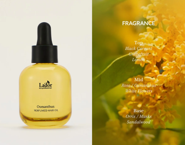 Комбинация от богат аромат на османтус, плодов аромат на кайсия и слива с мек аромат на мускус. Екстракти, направени от корейски местни растения с отлично качество на поддържане на влагата, осигуряващи необходимата влага на косата