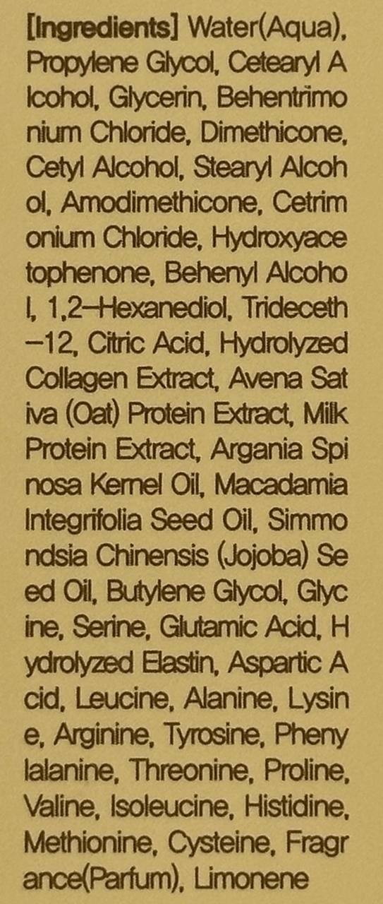 Маска за коса с протеин и хидролизиран колаген ,комбинира четири мощни активни съставки, които дълбоко възстановяват и укрепват косата. Хидролизираният колаген прониква в структурата на косъма, като запълва увредените участъци и възвръща неговата еластичност. Млечните протеини (Milk Protein Extract) подхранват и омекотяват косата, придавайки ѝ копринена гладкост и естествен блясък. Овесените протеини (Avena Sativa Protein Extract) хидратират в дълбочина, успокояват и създават защитен филм, който предотвратява дехидратацията. Хидролизираният еластин подобрява гъвкавостта на косъма и предпазва от накъсване. В синергия тези съставки възстановяват жизнеността на косата, правейки я по-здрава, гладка и устойчива на увреждане.