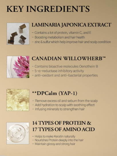 Шампоан за коса, с екстракт от водорасли, той съдържа 14 вида протеини, 17 вида аминокиселини и 2 патентовани съставки, които осигуряват на косата нужните хранителни вещества, вдъхвайки живот, блясък и мекота.