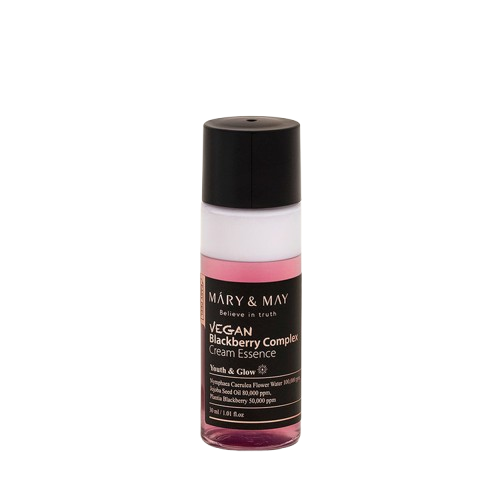 Есенция-крем с растителни екстратки. Mary&May Vegan Blackberry Complex Cream Essence съдържа подхранващ крем в освежаваща есенция и балансира баланса на мазнините и влагата в крема с освежаващо използване на есенция. Когато двата слоя се разклатят леко със специалната формула на Mary&May - технологията Double Phase Emulsion, есенцията-крем с висок вискозитет се разтваря в хидратиращата есенция и се стабилизира, а концентрираното подхранване се абсорбира свежо и бързо.