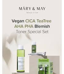 1. Mary&May Vegan CICA Tea Tree AHA PHA Toner 200ml & 30ml
