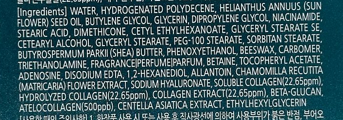 Крем за лице с колагенов комплекс, ниацинамид, масло от ший и хиалуронова киселина, създаден да осигури интензивна хидратация, подхранване и подобряване на еластичността на кожата. Формулата съдържа комплекс от няколко вида колаген, които подпомагат задържането на влагата и допринасят за по-гладък и стегнат вид на кожата. Ниацинамидът помага за изравняване на тена, подобрява текстурата на кожата и подпомага поддържането на здрава кожна бариера. Маслото от ший подхранва в дълбочина, омекотява и предпазва кожата от изсушаване, като я оставя кадифено мека и защитена. Хиалуроновата киселина осигурява дълготрайна хидратация, като подпомага задържането на влагата в кожата и създава усещане за свежест и комфорт през целия ден. Формулата е обогатена и с аденозин – активна съставка, известна със своите анти-ейдж свойства, която подпомага изглаждането на фините линии и подобрява еластичността на кожата. Кремът съдържа и успокояващи и хидратиращи съставки като бета-глюкан, алантоин и екстракт от лайка, които подпомагат възстановяването на кожата и намаляват усещането за раздразнение. Подходящ е за ежедневна употреба, като оставя кожата хидратирана, по-гладка и с по-сияен вид.