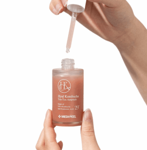 Ампула за лице с Комбуча, 8 вида хиалуронова киселина и 5 вида серамиди, осигурява дълбока и богата хидратация на кожата, бори се с фини линии и бръчки и предотвратява появата на нови, подобрява тена, успокоява кожата, подобрява текстурата.
