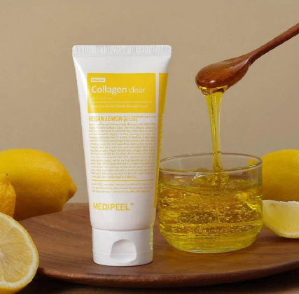 Веган почистваща пяна за лице с витамини, която съдържа 12 вида липозомни витамини, глутатион, веган колаген, която намалява порите и помага в борбата с разширените пори. Пподобрява текстурата на кожата, премахва мъртвите кожни клетки и излишния себум. MEDI-PEEL Vegan Vitamin Collagen Clear е почистваща гел пяна с лимони от остров Jeju с естествена AHA за почистване на лицето и озаряване на кожата и е с леко кисела формула pH6,5. Има жълта гелообразна текстура