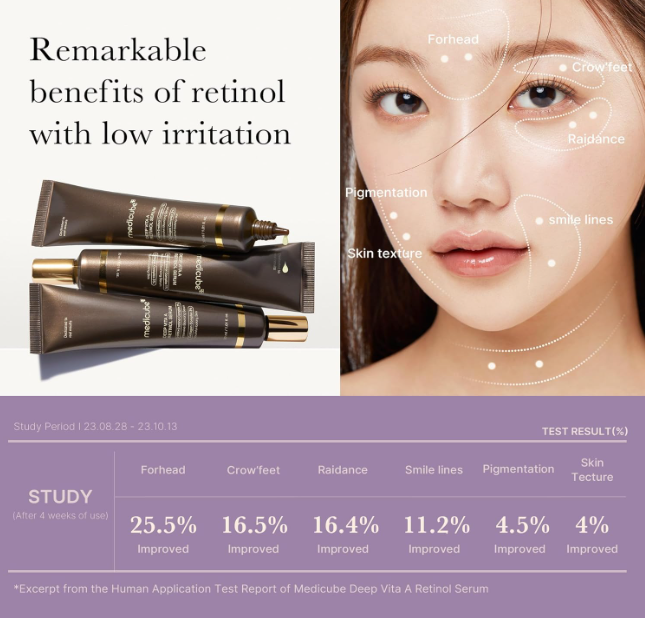 Ретинолът e производно на витамин А, той се справя с различни кожни проблеми, особено признаци на стареене. Ретинолът стимулира производството на колаген, протеин, който помага да се поддържа еластичността на кожата и намалява появата на фини линии и бръчки. Дори малки количества могат да бъдат от полза, а комбинирането на ретинол с други съставки против стареене е по-ефективно, отколкото да се разчита само на високи концентрации на ретинол.