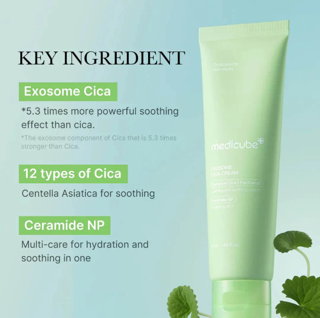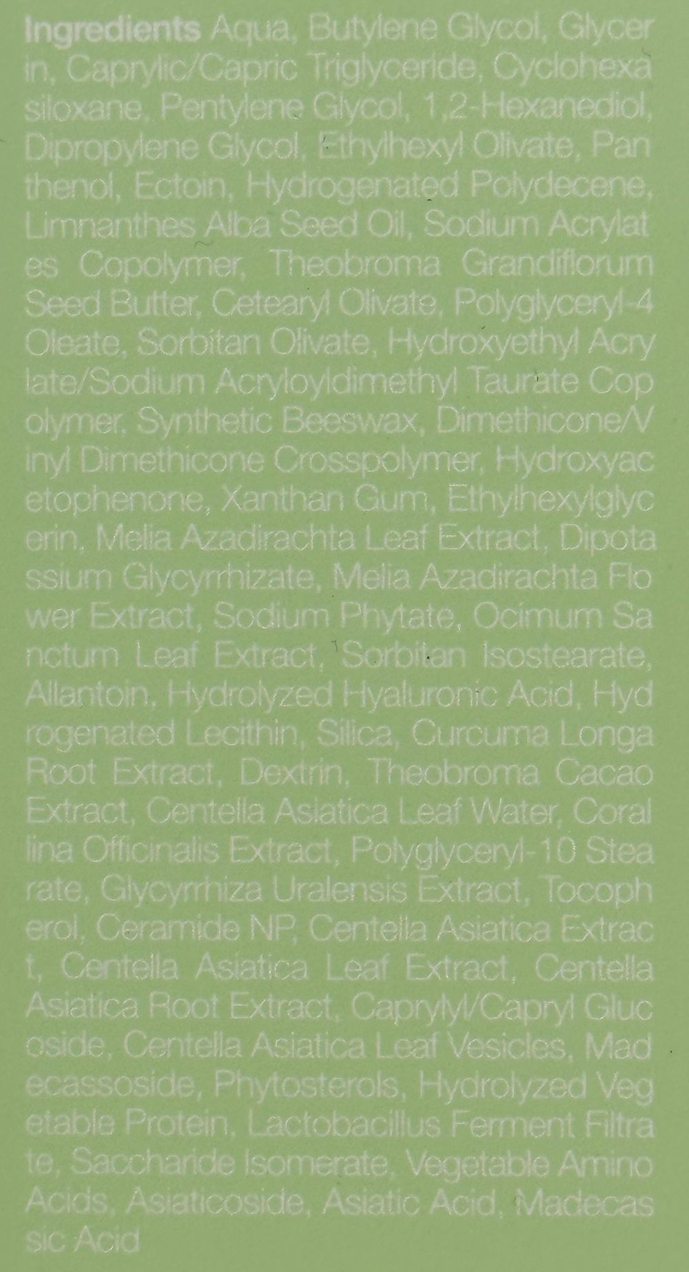 Крем за лице с комплекс от азиатска центела и мадекасова киселина ,осигурява оптимална хидратация и поддържа целостта на бариерата. В състава на този крем има Exosome Cica — изключително фин наноразмерен дерматологичен агент, който прониква в кожата по-дълбоко от обикновените активни съставки и предоставя 5.3× по-силен успокояващ ефект в сравнение с традиционната „cica“ грижа. Формулата съдържа внимателно подбрана комбинация от емолиенти и хумектанти, които подобряват еластичността на кожата. Активните съставки подпомагат регенеративните процеси и намаляват трансепидермалната загуба на вода, като осигуряват дълготрайно овлажняване. Комплексът от растителни екстракти и аминокиселини спомага за възстановяването на клетъчния баланс и защитава кожата от оксидативен стрес. Включените биоферменти укрепват микробиомната устойчивост и подпомагат естествените защитни механизми. Формулата има доказан успокояващ ефект, редуцира усещането за дискомфорт и възпаление и подобрява бариерната функция. Текстурата се абсорбира бързо, без да утежнява, и оставя фин защитен филм. Подходящ за всички типове кожа, включително чувствителна и дехидратирана. При редовна употреба кожата възвръща своята еластичност, гладкост и равномерен тон. Резултатът е видимо по-здрава, устойчива и жизнена кожа с възстановен хидролипиден баланс.