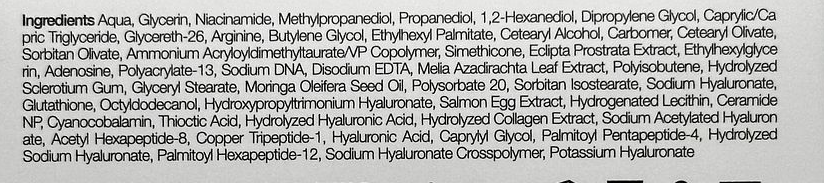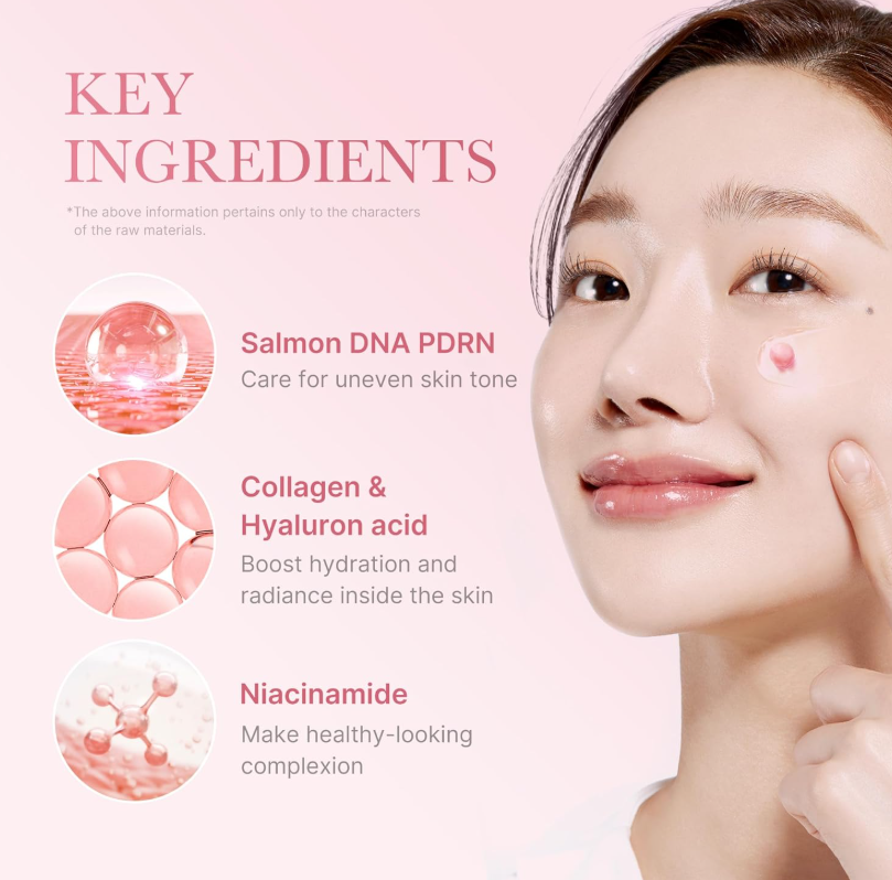 Крем за лице с екстракт от хайвер на сьомга, 4 вида пептиди, тиоктова киселина и глутатион , е иновативен крем за лице с капсулна формула, създаден да възстановява, подмладява и подобрява цялостното състояние на кожата. Кремът съдържа PDRN, извлечен от сьомга, който подпомага регенерацията на кожните клетки и спомага за възстановяването на кожната бариера. Формулата е обогатена с екстракт от хайвер на сьомга, който подхранва кожата и допринася за по-плътен и жизнен вид. Колагенът в състава помага за подобряване на еластичността и стегнатостта на кожата, като ѝ придава по-гладък и изпълнен вид. Добавеният глутатион подпомага изравняването на тена и придава по-сияен и свеж външен вид. Кремът съдържа четири вида серамиди, които укрепват кожната бариера и спомагат за задържането на влагата в кожата. Тиоктовата киселина допринася за антиоксидантната защита и подкрепя обновяването на кожата. Текстурата с розови капсули се разтапя върху кожата и осигурява интензивна хидратация без усещане за тежест. Кремът подпомага подобряването на текстурата на кожата и намалява усещането за сухота и дискомфорт. При редовна употреба кожата изглежда по-гладка, по-еластична и по-сияйна. Проучванията показват , че веднага след първата употреба, хидратацията е с 102,4% подобрена. Продуктът е подходящ за ежедневна употреба като последна стъпка в грижата за кожата.