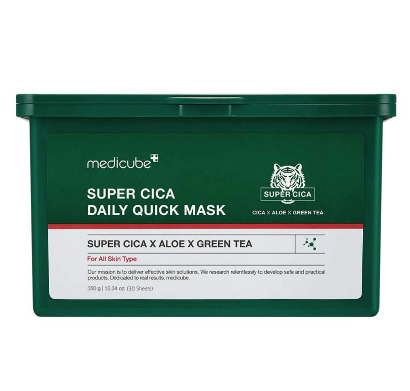 Комплект от 30 лист маски за лице с азиатска центела, чаено дърво, алое и други антиоксидантни и успокояващи съставки, които хидратират, успокояват и регенерират кожата, докато се борят със свободните радикали и преждевременното стареене на кожата.