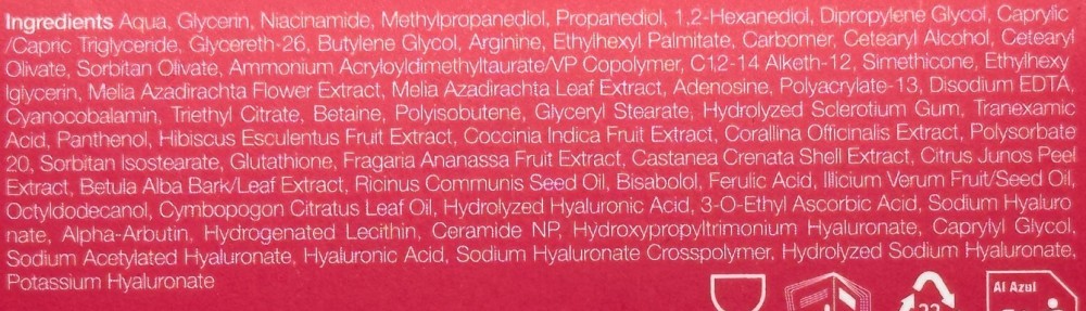 Ниацинамида подобрява неравномерния тен на кожата, помага в борбата с фините линии и бръчки и стяга порите. Други предимства на ниацинамида са, че помага за обновяване и възстановяване на повърхността на кожата срещу загуба на влага и дехидратация.