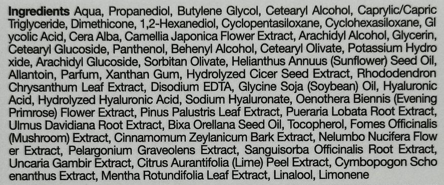 Крем за лице с AHA (гликолова киселина), пантенол, хиалуронова киселина и антиоксидантни съставки, които спомагат за намаляването на порите, баланс на себум/влага и осигурява освежаваща хидратация на кожата.