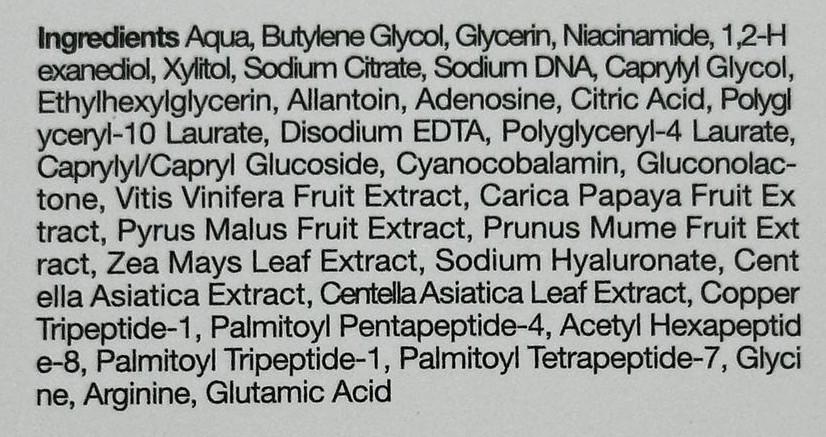 С формула, обогатена с PDRN от сьомга, 5 вида пептиди и азиатска центела, който ефективно успокова и регенерира кожата, хидратира и стимулира производството на колаген и еластин в кожата.