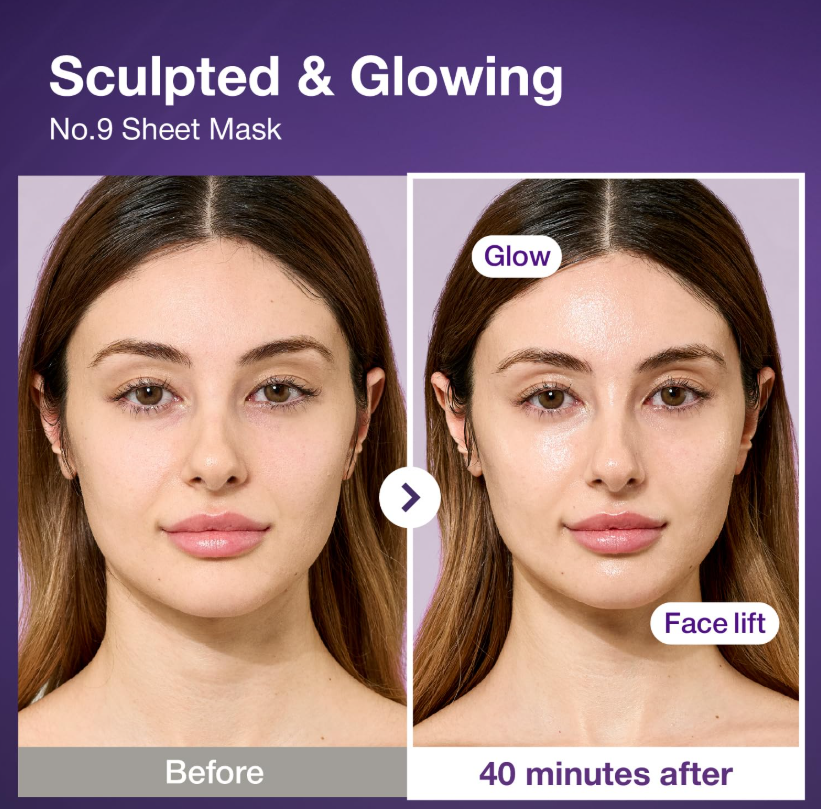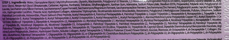 Двукомпонента маска за лице с комплекс от 52 вида пептиди е високоефективна лифтинг маска за цялото лице, разработена за интензивно стягане, възстановяване на еластичността и видимо подобряване на контурите още след първото използване. Продуктът използва иновативен двукомпонентен дизайн, включващ отделна горна и долна част, които осигуряват максимално прецизно прилепване към анатомията на лицето и равномерно разпределение на активните съставки. Горната маска съдържа концентрирани NAD+ BIO капсули, докато долната е обогатена с разтворими PLA нишки, създадени да подпомагат лифтинга и визуалното оформяне на челюстната линия и брадичката. В комплекта е включена и специална лифтинг лента (lifting band), която се поставя под брадичката и се фиксира над главата, за да подсили механично стягащия ефект и да подпомогне скулптурирането на лицевия овал. Основната активна съставка NAD+ (Nicotinamide Adenine Dinucleotide) играе ключова роля в клетъчния метаболизъм, като подпомага обновяването на кожните клетки, стимулира синтеза на колаген и подкрепя естествените процеси на регенерация. Благодарение на това кожата изглежда по-плътна, по-гладка и по-еластична. Формулата е подсилена с комплекс от 52 различни пептида, които действат като сигнални молекули за подобряване на еластичността, намаляване на фините линии и повишаване на стегнатостта на кожата. Допълнително са включени хидролизиран колаген и аденозин, насочени към изглаждане на бръчките и подобряване на цялостната структура на кожата. Ниацинамидът допринася за изравняване на тена, подсилване на кожната бариера и поддържане на оптимално ниво на хидратация. Съставът съдържа и мощен антиоксидантен комплекс, включващ коензим Q10 и тиоктова киселина, които предпазват кожата от оксидативен стрес и външни агресори. Ферментиралите минерални комплекси подпомагат жизнеността на кожата и придават по-свеж и здрав вид. Продуктът е клинично тестван и е показал подобрение в еластичността, намаляване на видимостта на бръчки в зоните на челюстта, бузите, усмивните линии, брадичката и шията, както и визуално свиване на порите и редуциране на подпухналостта.
