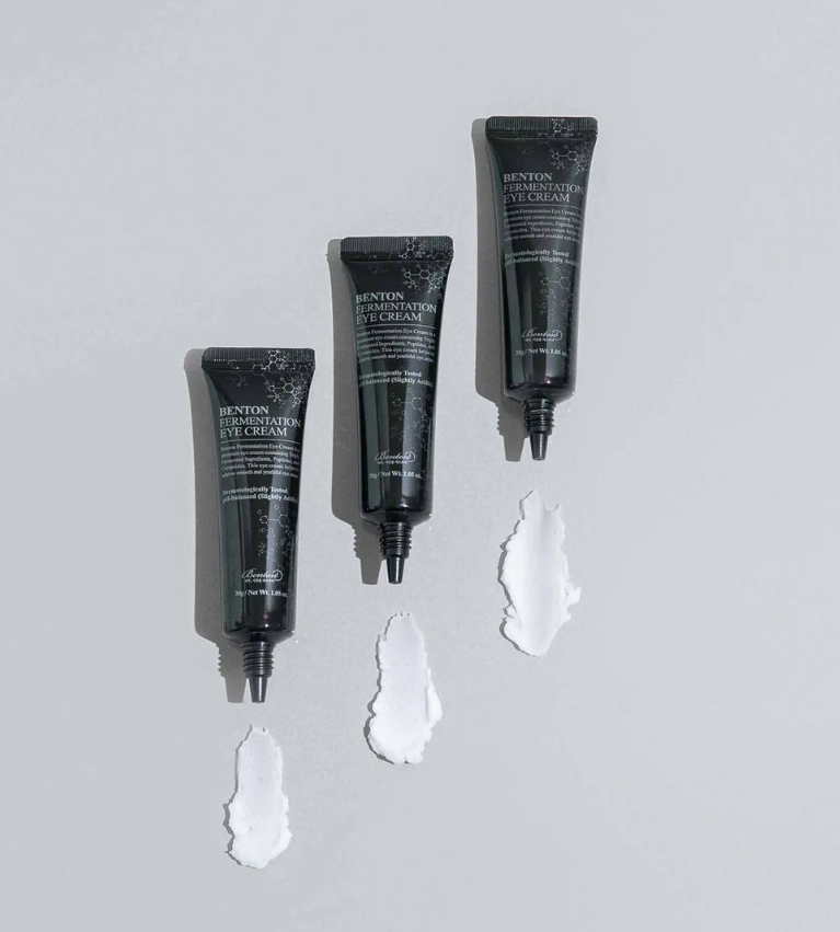Кремът за очи Benton Fermentation съдържа високо съдържание на ферментиращи съставки, включително Galactomyces и Bifida Ferment Lysate за борба с бръчките и мимическите линии и за възстановяването на еластичността на кожата. Формулата на крема включва и масло от макадамия, алое вера, хиалуронова киселина и серамиди, които овлажняват и успокояват кожата.