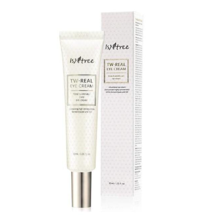 Накратко:Isntree Tw-Real Eye Cream е околоочен крем, който изравнява тена и изглажда бръчките. Съдържа 61% Bifida Ferment Lysate, която подобрявае на отслабената кожна бариера и предпазва кожата в зоната около очите, където кожата е по-фина и податлива на външни влияния. Bifida е пълна с аминокиселини, млечна киселина и други здравословни за кожата хранителни вещества.