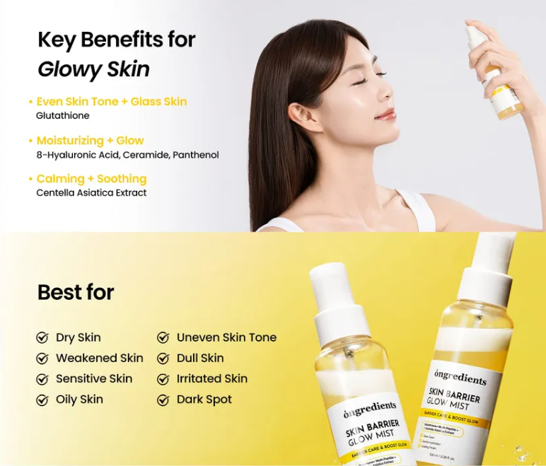 Глутатионът има антиоксидантни свойства, които предпазват кожата от оксидативен стрес и свободни радикали, като по този начин предотвратяват преждевременното стареене на кожата. Освен това изсветлява кожата, помага за изравняване на тена на кожата и намалява хиперпигментацията. Освен това, противовъзпалителните ефекти на глутатиона успокояват кожни заболявания като акне и розацея, като същевременно насърчават производството на колаген и еластин за подобрена еластичност на кожата.