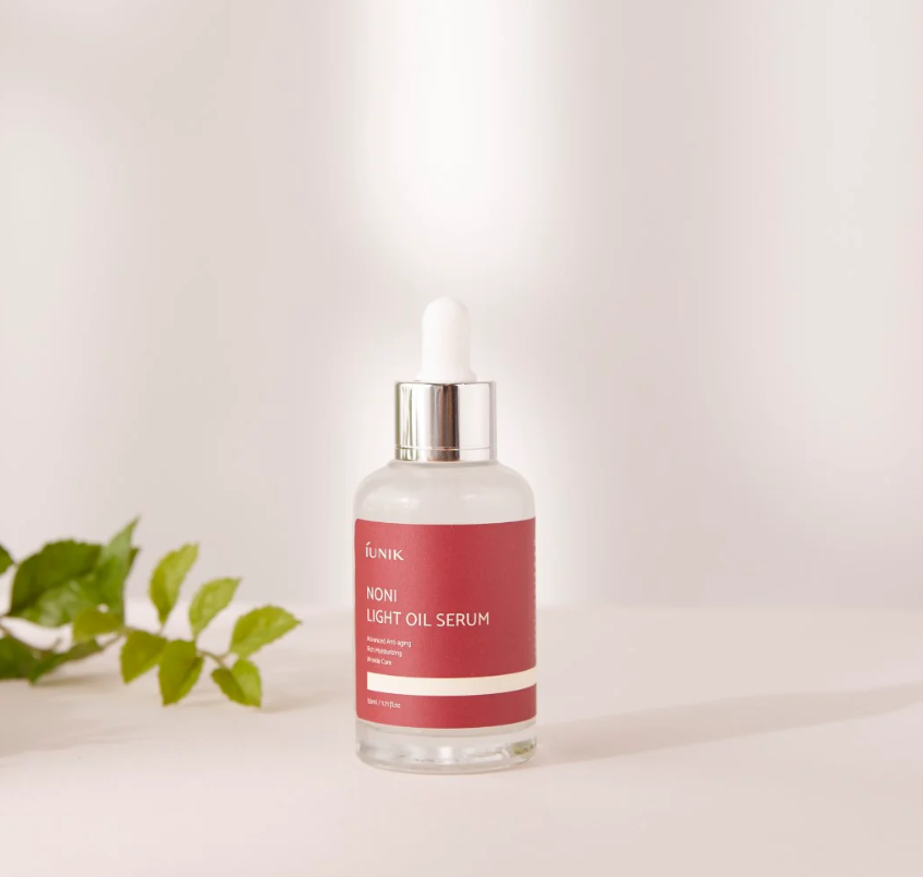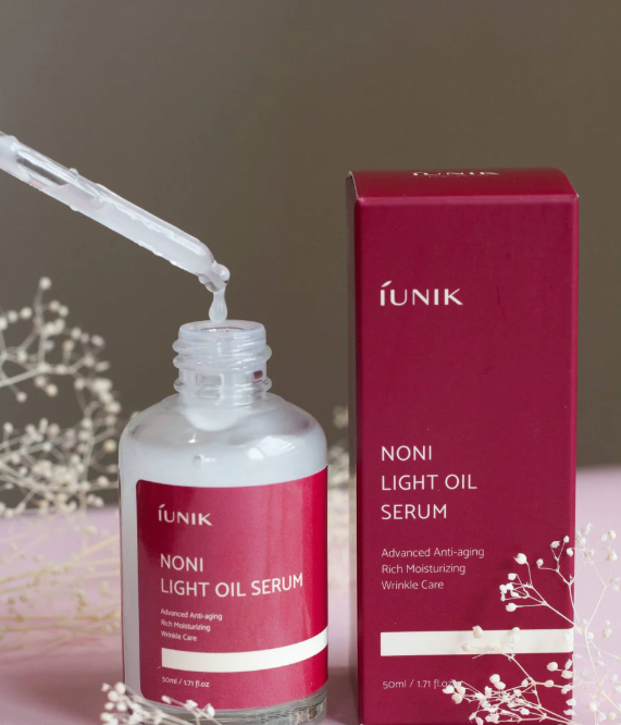 iUNIK Noni Light Oil Serum е формулиран с екстракт от плодa нони, богат на мощни антиоксиданти за борба с признаците на стареене. Продуктът е комбинация от масло и серум. Съдържа екстракт от плод нони иразлични растителни масла, включително жожоба, макадамия и зехтин, за овлажняване на кожата и задържане на влагата. Уникалната смес от масло и плодов екстракт придава блясък на кожата и подобрява фините линии и бръчки. Добавените екстракти от къдраво зеле и боровинка подхранват кожата, като същевременно осигуряват антиоксидантни свойства. Лека текстура, но дълбоко овлажняваща. Подходящ за зряла кожа.