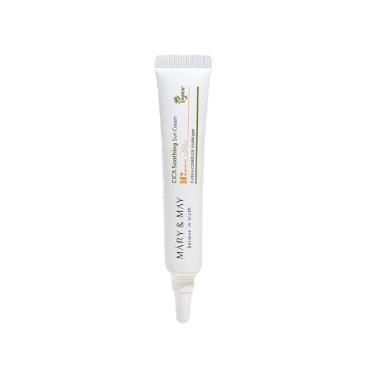 Накратко:Ежедневен хидратиращ слънцезащитен крем без бели оттенъци и лепкавост. Mary&May CICA Успокояващ слънцезащитен крем толкова лек, сякаш нанасяте хидратиращ крем. Кремът ефективно защитава кожата от ултравиолетовото лъчение и е насочен към нежна грижа за кожата, по-специално - интензивна хидратация, подмладяване и изравняване на тона. F-Cica Complex съчетава седем производни на centella asiatica за успокояване на чувствителната кожа, инозитолът привлича влагата към кожата, а бетаинът помага за изпълване и оросяване. Съставът на крема е обогатен със 7 вида Centella Asiatica (екстракт от центела и нейните производни), които успокояват раздразнената кожа и я предпазват от вредните влияния на околната среда. Има лека текстура, разнася се равномерно и се използва лесно дори под грим.
