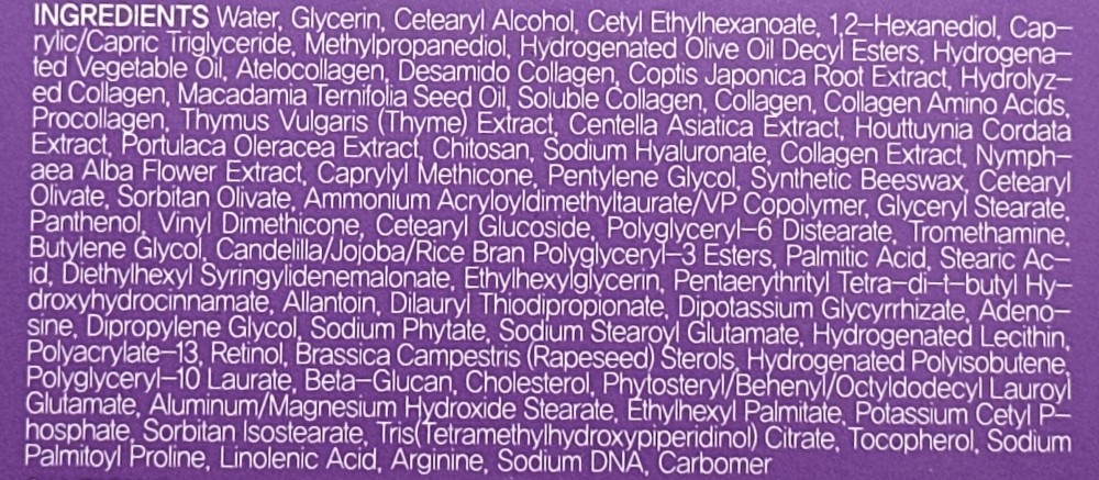 Крем за лице с 8 форми на колаген, хиалуронова киселина и 8 вида растителни ферменти, създаден да подобри еластичността на кожата, да подсили естествената ѝ бариера и да осигури дълготрайна хидратация за по-гладка, плътна и свежо изглеждаща кожа. Формулата комбинира различни молекулни форми на колаген, които подпомагат поддържането на стегнатия вид и комфорта на кожата в дълбочина, докато хиалуроновата киселина задържа влагата и предпазва от изсушаване. Комплексът от ферментирали растителни екстракти подпомага баланса на кожата и допринася за по-здрав и сияен тен. Растителните ферменти в състава се получават чрез ферментация на растителни екстракти с полезни микроорганизми (напр. Lactobacillus). Този процес разгражда активните вещества на по-малки молекули, които кожата по-лесно усвоява. Допълнително вложените подхранващи липиди, успокояващи и възстановяващи съставки спомагат за изглаждане на фините линии и възстановяване на мекотата при суха и уморена кожа. Кремът има богата, но лека текстура, която се абсорбира лесно без лепкаво усещане, оставяйки кожата гладка, подхранена и защитена през целия ден. Подходящ е за ежедневна употреба при кожа със загуба на еластичност, сухота и нужда от допълнително подхранване и възстановяване.