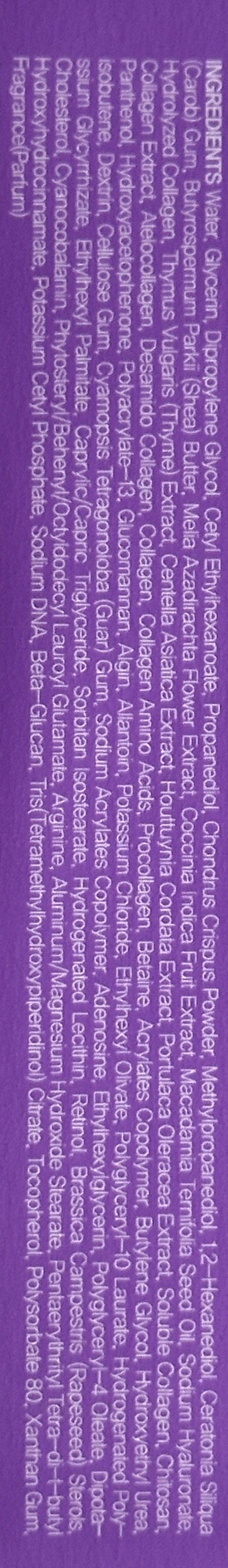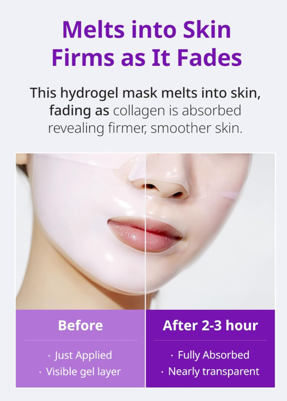 Хидрогелна маска за лице с ниацинамид, хиалуронова киселина, мадекасова киселина, аденозин и алантоин е създадена да подпомага еластичността, хидратацията и цялостното подобряване на текстурата на кожата. Маската е изработена от хидрогелов материал, който прилепва плътно към лицето и позволява активните съставки постепенно да се абсорбират в кожата по време на употреба. Продукта съдържа ниацинамид, който подпомага озаряването и изравняването на тена, като допринася за по-гладък и равномерен вид на кожата. В състава присъстват няколко форми на хиалуронова киселина, които подпомагат интензивното овлажняване и задържането на влагата в кожата. Маската съдържа хидролизиран и разтворим колаген, които подпомагат подобряването на еластичността и придават по-плътен и т.нар „bouncy“ вид на кожата. Включената мадекасова киселина, подпомага успокояването на кожата и поддържането на нейния комфорт, особено при чувствителност или раздразнение. Формулата съдържа и аденозин, който подпомага подобряването на еластичността и спомага кожата да изглежда по-гладка и свежа. Добавеният алантоин подпомага успокояването и омекотяването на кожата, като допринася за по-комфортно усещане след употреба. Маската включва още пантенол, който подпомага хидратацията и поддържа кожата мека, както и растителни екстракти като Camellia Sinensis (зелен чай), Melia Azadirachta и Pyrus Malus (ябълка), които допринасят за поддържане на кожата в добро общо състояние.