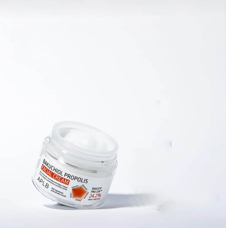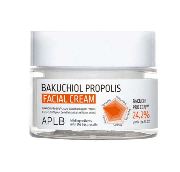 Крем за лице с прополис и бакучиол е създаден, съчетавайки силата на природата и прецизността на дерматологичната наука. Основният актив – бакучиол, растителен аналог на ретинола, стимулира синтеза на колаген и ускорява клетъчното обновяване, без да предизвиква раздразнение или сухота. Той изглажда текстурата, подобрява еластичността и редуцира фините линии, придавайки на кожата равномерен и стегнат вид. Прополисовият екстракт допълва действието му с антибактериални, антиоксидантни и успокояващи свойства, като укрепва защитната бариера и предпазва от външни агресори. Азиатската центела и нейните активни съединения – азиатикова киселина, мадекасова киселина и азиатикозид – стимулират регенерацията и поддържат баланса на чувствителната кожа. Хидролизираният колаген и хиалуроновата киселина осигуряват дълготрайна хидратация и възстановяват плътността на кожата. Скваланът, маслото от ший и макадамия подхранват и омекотяват, като запазват влагата в дълбоките слоеве. Бета-глюканът и ферментиралите екстракти засилват естествената устойчивост и подпомагат равномерния, здравословен тен. Текстурата е лека и комфортна, подходяща както за дневна, така и за нощна грижа. При редовна употреба кожата изглежда по-гладка, по-стегната и видимо подмладена.