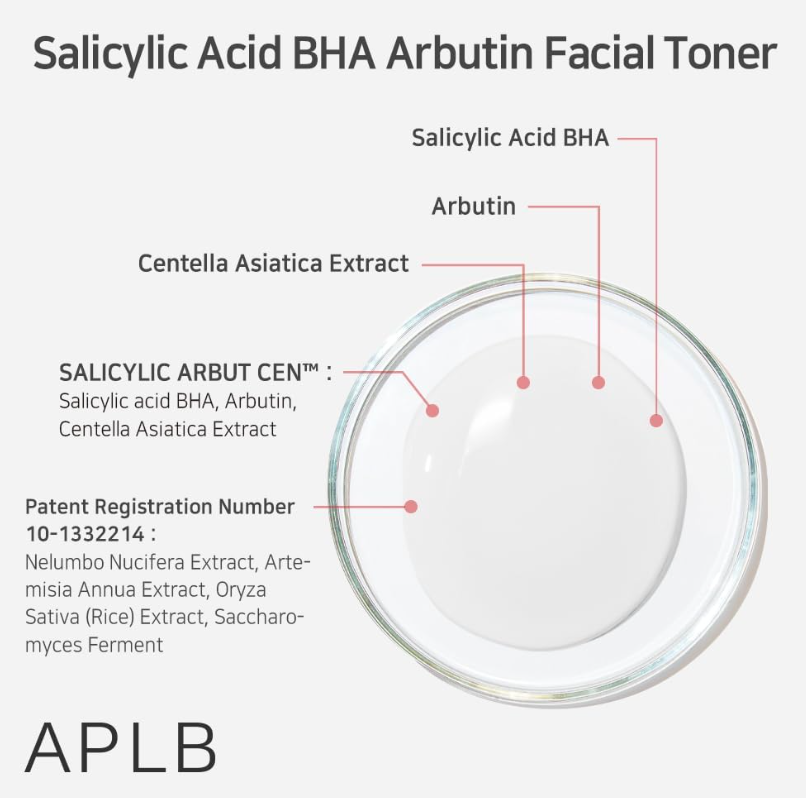 Тонер за лице със салицилова киселина и арбутин е създаден като балансираща и освежаваща формула, която подготвя кожата за следващите стъпки в грижата и едновременно с това ѝ осигурява видимо по-чист и равномерен вид. Основните активни съставки – арбутин и салицилова киселина – работят синергично: арбутинът изравнява тена и намалява пигментните петна, докато салициловата киселина пречиства порите и подобрява текстурата на кожата. Centella Asiatica Leaf Water с нейните активни компоненти – азиатикова, мадекасова киселина и азиатикозид – успокоява и възстановява кожната бариера, намалявайки раздразненията. Уреята и хиалуроновата киселина осигуряват дълбока хидратация и поддържат оптимален воден баланс. Пантенолът и алантоинът подпомагат възстановяването и омекотяват кожата, като придават усещане за комфорт. Скваланът и бета-глюканът подсилват естествената защита, а екстрактите от чайно дърво, морски зърнастец и ориз имат антиоксидантен и антимикробен ефект. Формулата е балансирана по pH и подходяща за ежедневна употреба, дори при чувствителна кожа. Текстурата е лека и освежаваща, абсорбира се мигновено, без лепкавост. При редовна употреба кожата става по-гладка, по-свежа и с равномерен, здравословен блясък.