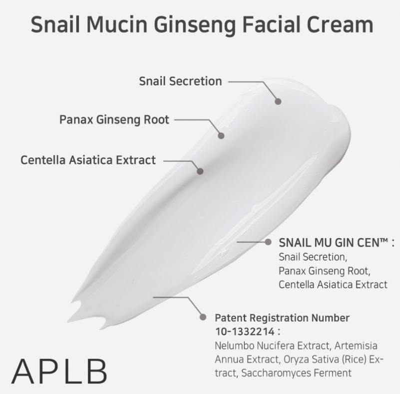 Муцинът от охлюв успокоява, регенерира и възстановява кожата, както и увеличава производството на колаген и намалява бръчките, подобрявайки еластичността на кожата. Освен това, помага за намаляване на акнето и изглажда текстурата на кожата, като насърчава обмяната на клетките.
