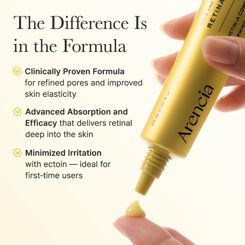 Ретиналът е ретиноид, получен от витамин А, който подобрява текстурата на кожата, намалява фини линии и бръчки и подобряват цялостния тонус и тен на кожата. Помага за регулиране на производството на меланин, намалявайки появата на хиперпигментация и тъмни петна, причинени от акне или други кожни проблеми.