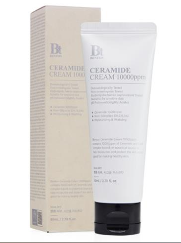 Benton Ceramide Cream 10000ppm съдържа 10000ppm серамид и липиден комплекс, базиран на ботанически източник, за да помогне за овлажняване и защита на кожата и е добър за оздравяване на кожата. Подпомага консистенцията на влагата със съставки Trehalose и Panthenol и Cynanchum Atratum Extract, местна патентована съставка, помага за успокояване и управление на топлината върху кожата! Крема е с леко киселинно pH 5,5 и е подходящ за всички типове кожа.