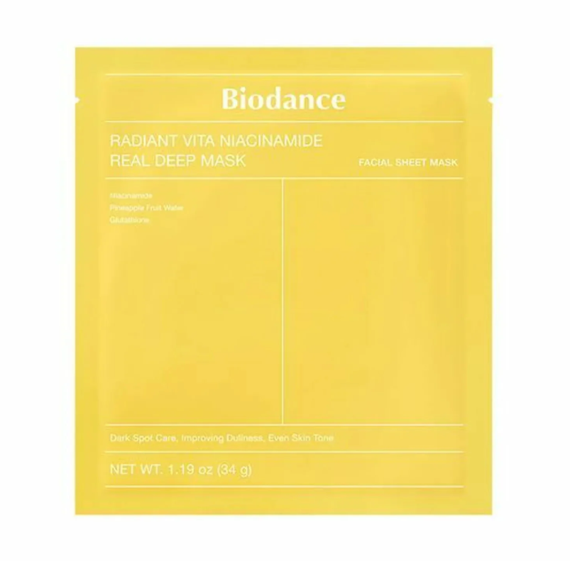 Маска за лице с ниацинамид и глутатион, която подпомага за борбата с хиперпигментации и тъмни петна, като осигуряват по-равномерен тен. Ензимът от ананас нежно ексфолира мъртвите кожни клетки и разкрива свеж и сияен вид на кожата. С комбинация от витаминни съставки намалява раздразненията и възстановява баланса за чист и сияен тен. Не съдържа алергени и 19 други агресивни съставки. Подходяща за чувствителна кожа.